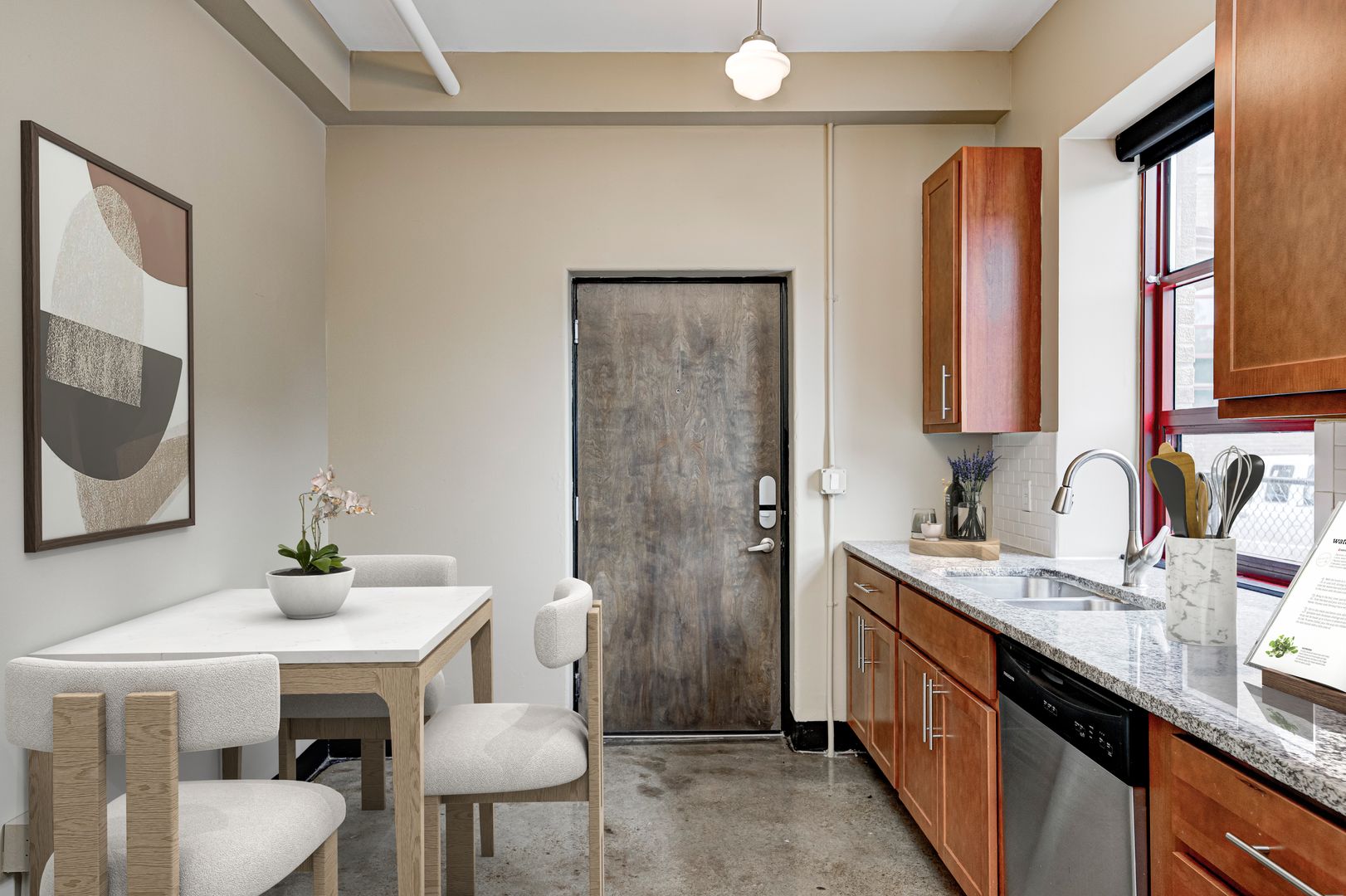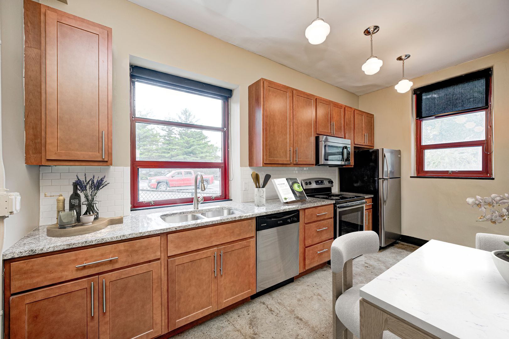 At Roberts School Flats, convenience meets peace of mind with keyless building and unit entry and optional gated parking for $30/m. Residents are responsible for electric, water, sewer, and trash. Indulge in the sense of community with access to our rooftop patio and communal grill area, perfect for social gatherings and enjoying the scenic views of the neighborhood.