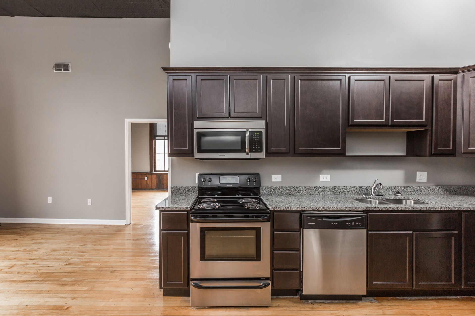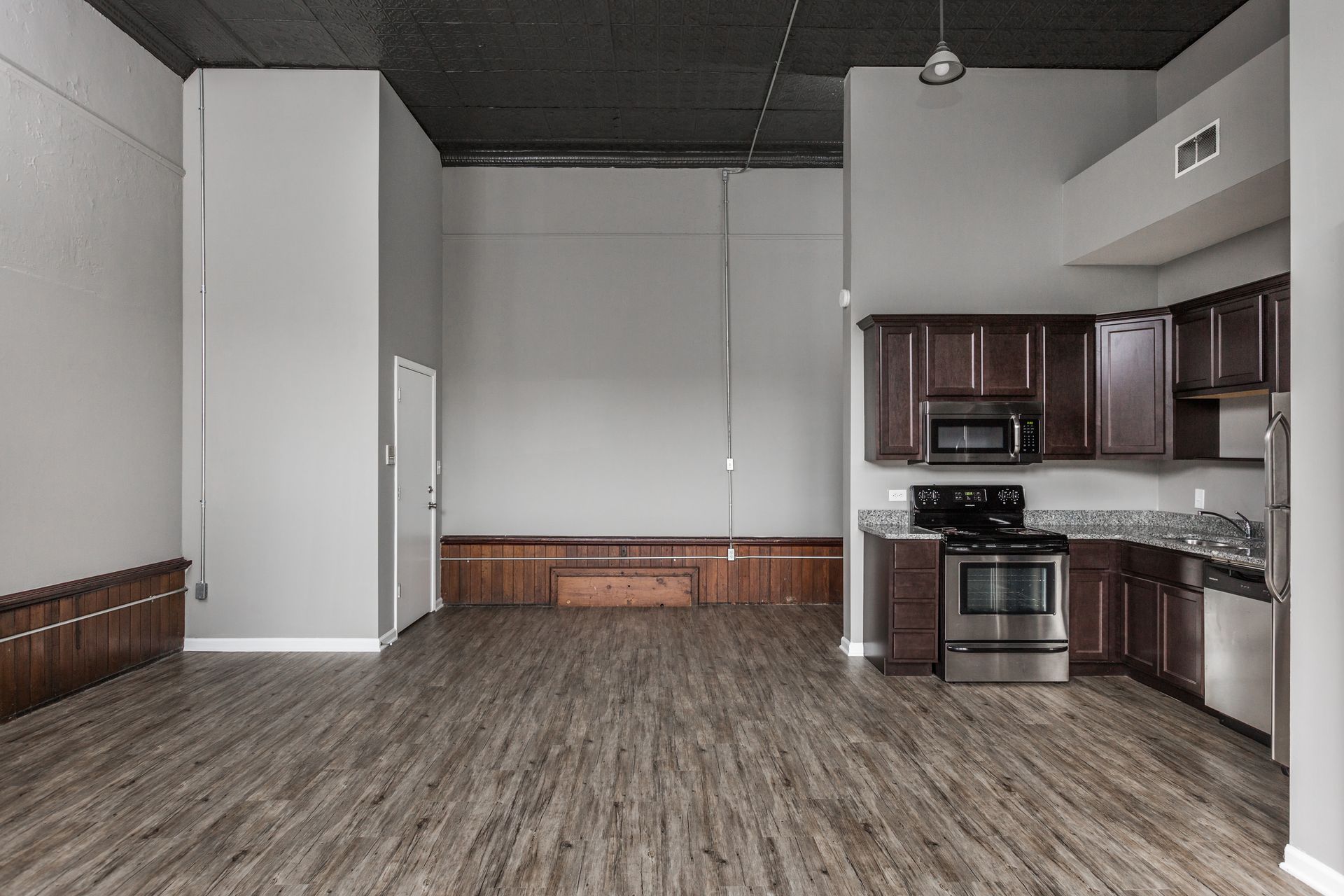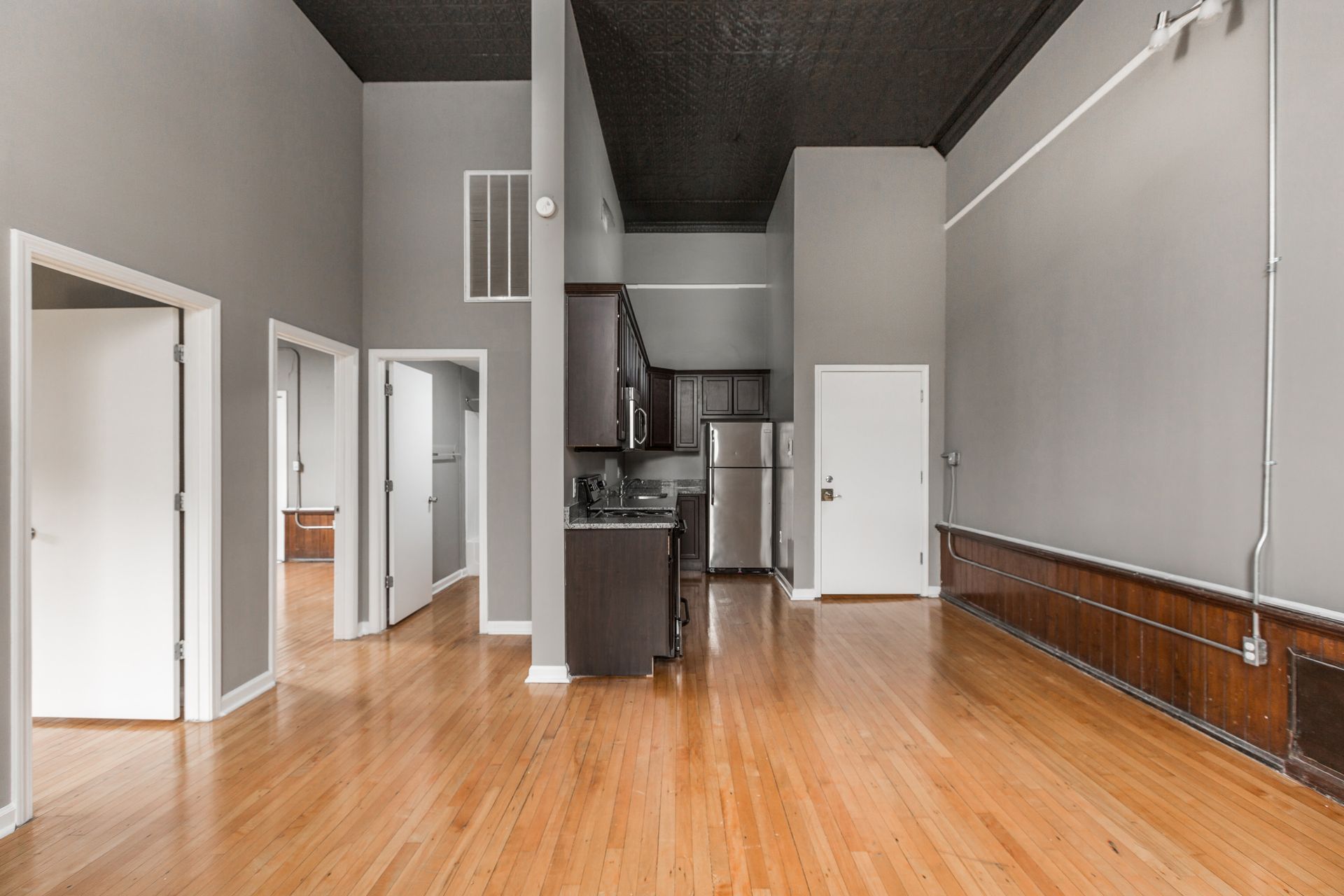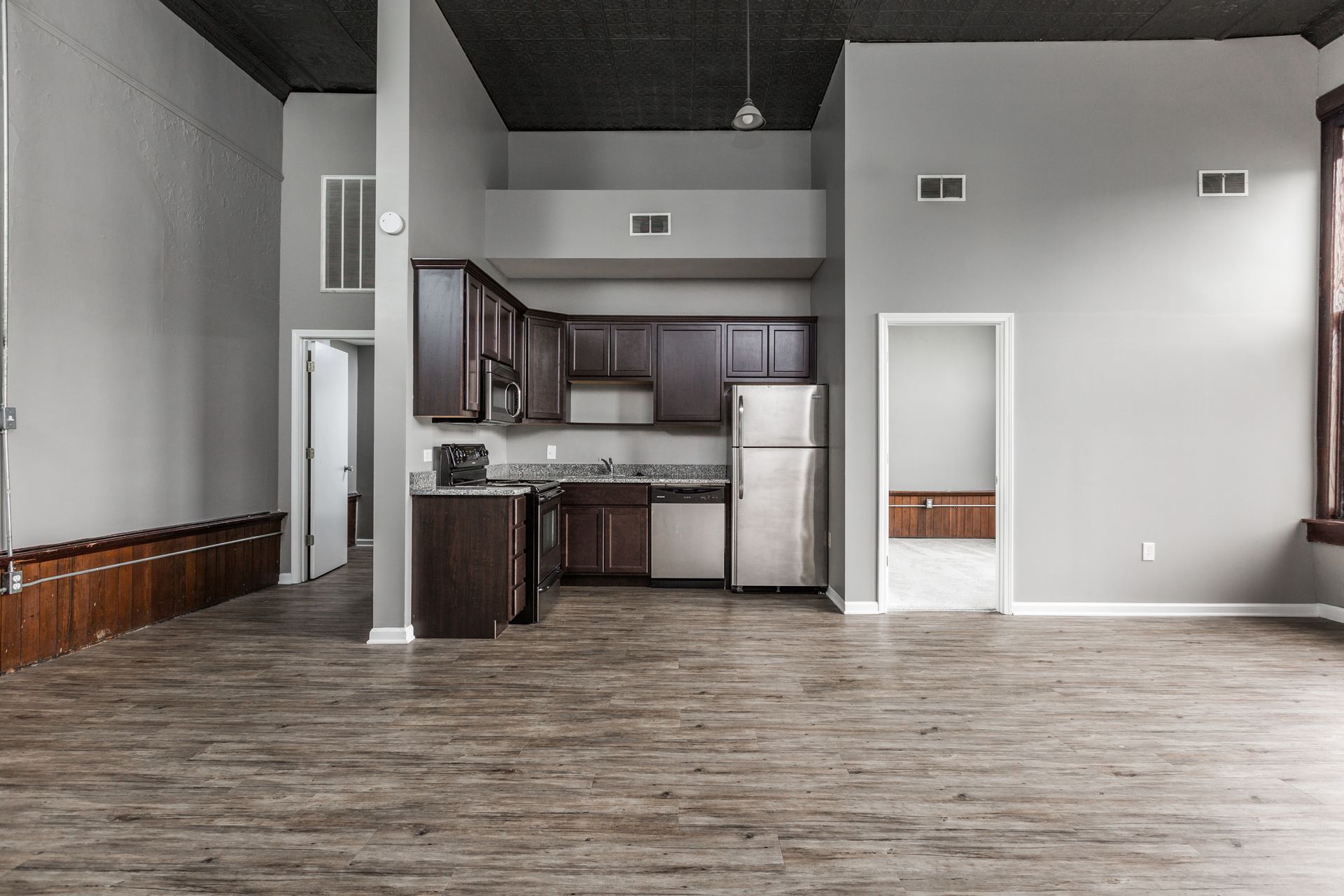 Even though construction for this building first started 1886 and acted as the first two-story school in the city, you will experience the epitome of modern living in our thoughtfully designed units, where every detail is crafted to enhance your lifestyle. Each apartment boasts updated appliances, including a convenient dishwasher, complemented by sleek wood floors and vaulted ceilings that add character and charm to your space. With ample natural light streaming through large windows, your home becomes a bright and inviting sanctuary. We are a dog free community, cats are welcome with a $100 one-time pet fee.