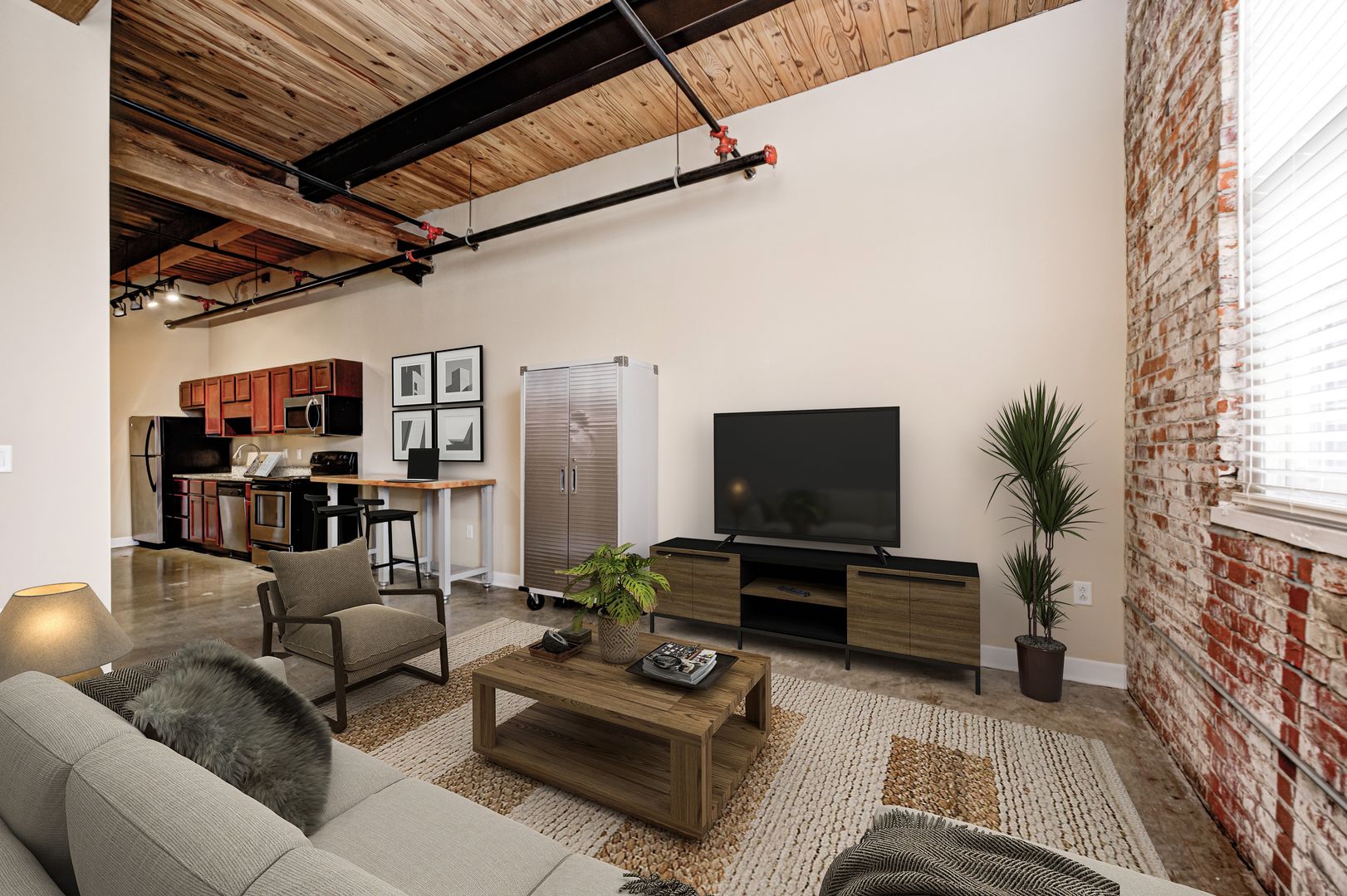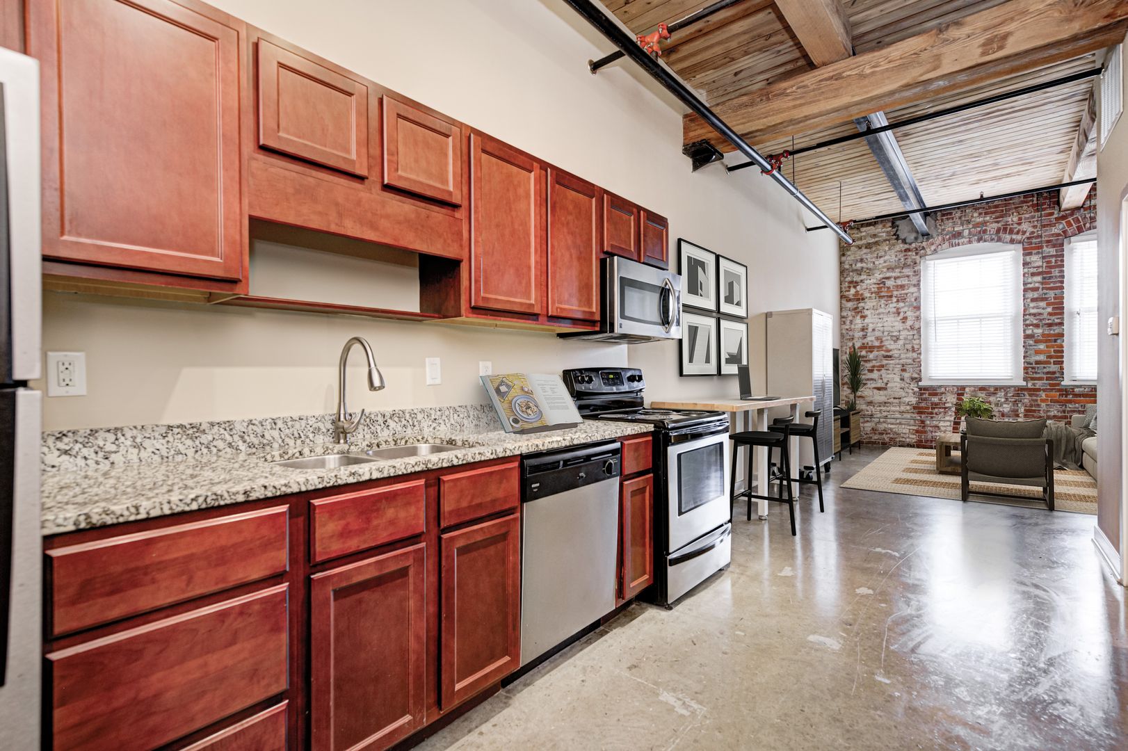 Beautiful Two Bedroom, One Bathroom facing South with exposed brick and a fully loaded kitchen and bedrooms separated by your bathroom. Best use of space in Indy!